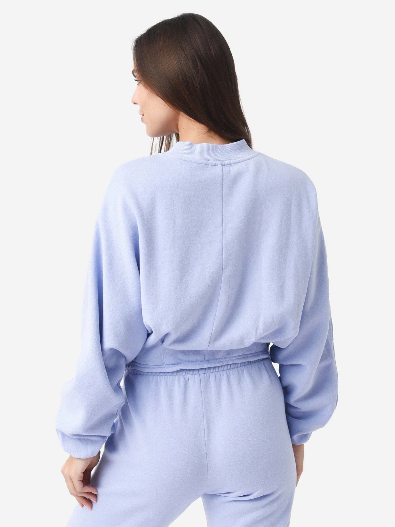 Elevated sweatshirt with dolman sleeves and pleated details.