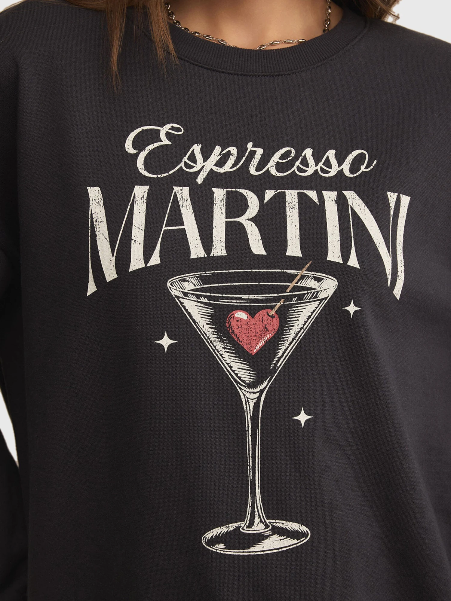 This oversized sweatshirt is made from soft, cozy fleece and features a custom espresso martini graphic.