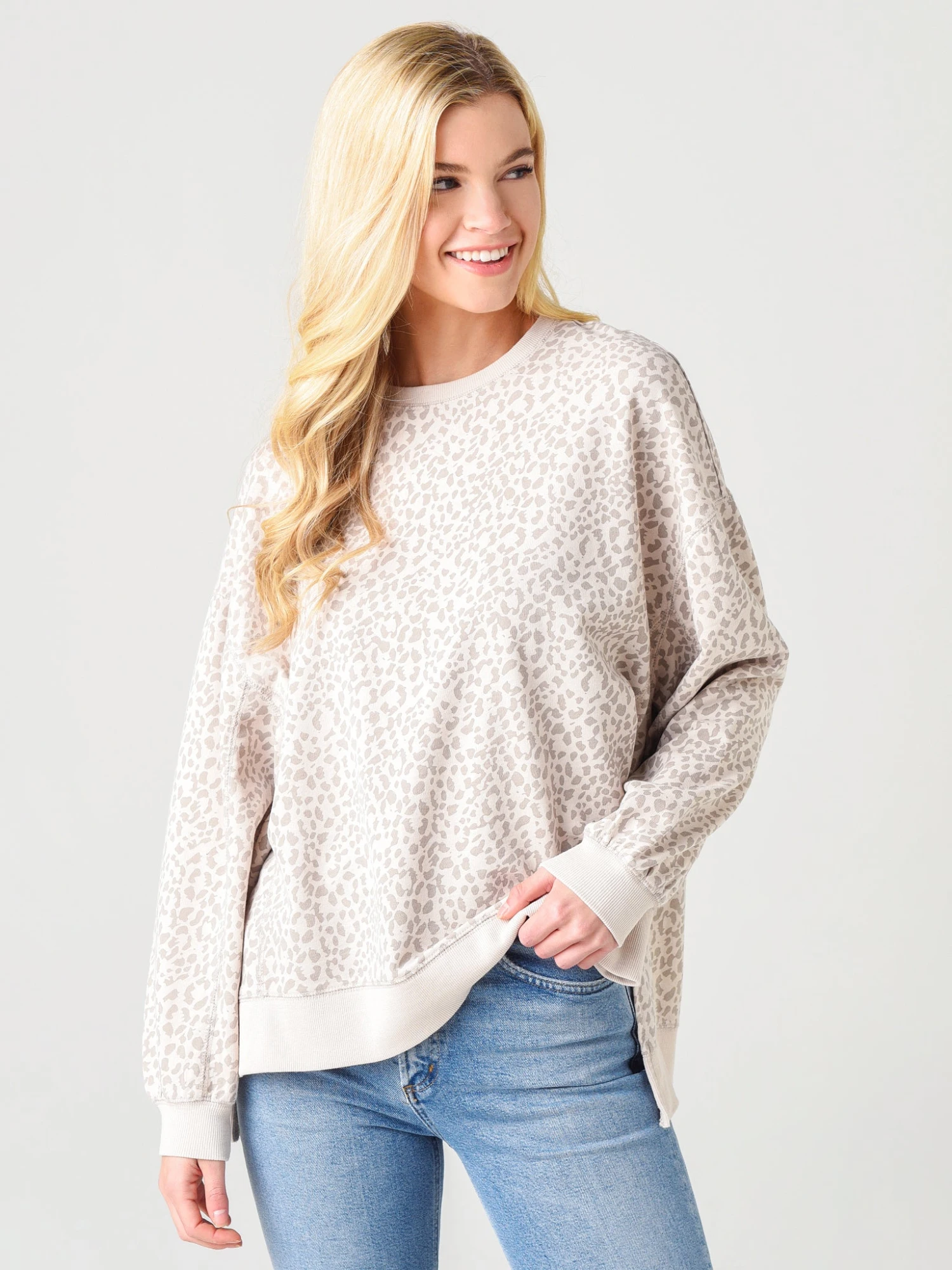 The Z Supply Women’s Tonal Leopard Modern Weekender is a tonal, relaxed pullover with a stylish oversized silhouette and chic side slits.